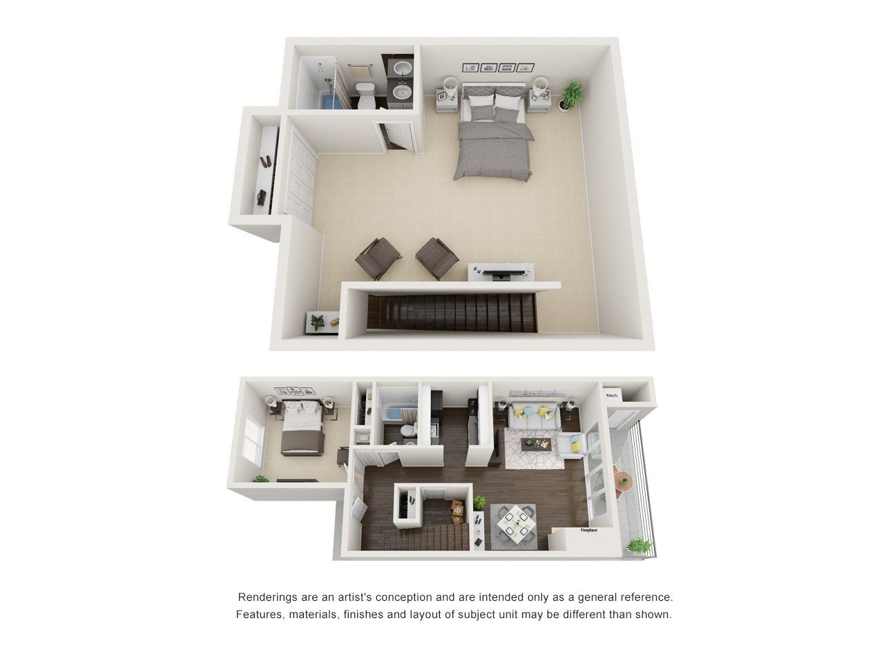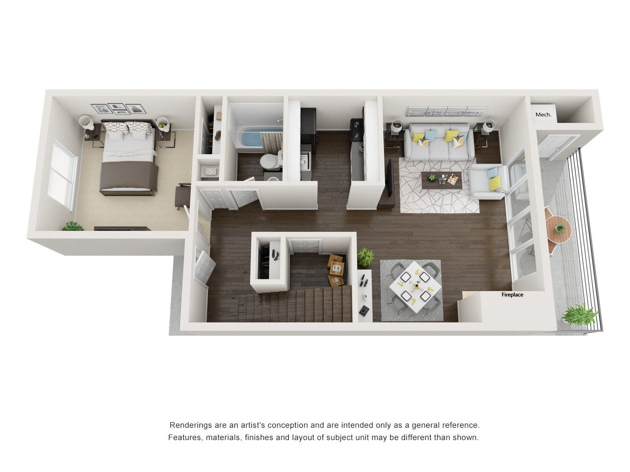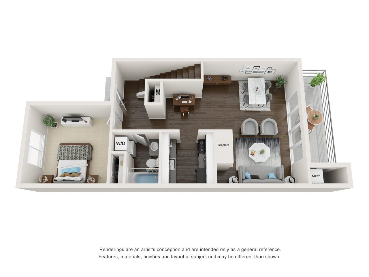 Private Entrance, Washer and dryer, Fully equipped kitchen, Dishwasher, Cozy electric fireplace, Cathedral Ceilings, Large walk-out patio or deck, Air conditioning, Loft-style townhomes available, Walk-in storage available…just to name a few.
